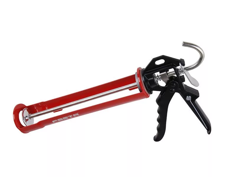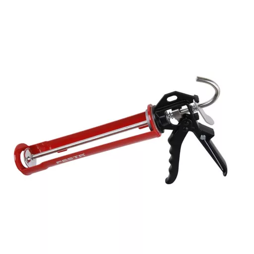 Extrudáló pisztoly FESTA, PROFI, minőségi megerősített és profilozott acélváz, valamint extrudáló és mozgó mechanizmus, a pisztolykeret zárt vége, fém ergonomikus fogantyú a kényelmes munkavégzés érdekében, profilozott fém oldalak, tüske a patron hegyében megszáradt gitt tisztításához, felhasználás: megerősített keret extra sűrű tömítőanyagokhoz - vegyi horgonyokhoz és habarcsokhoz, tömítőanyagok és ragasztók extrudálásához 310 ml-es patronokban.