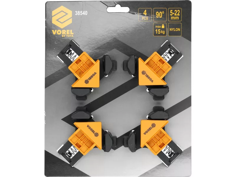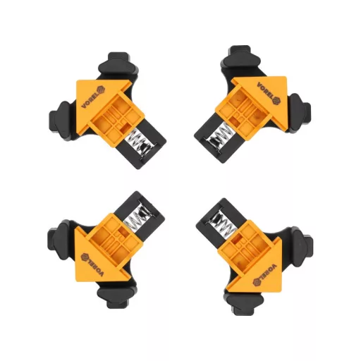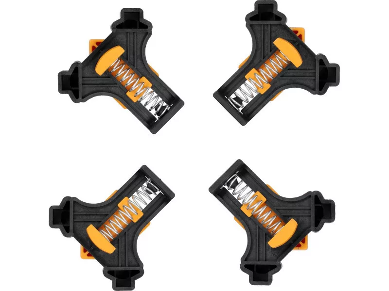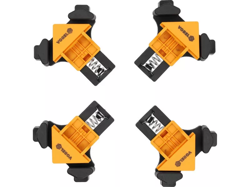 Súprava pružinových uhlových svoriek je praktické vybavenie stolárskej a montážnej dielne, určené na rýchle spájanie prvkov pod uhlom 90°. Konštrukcia so stlačovacou pružinou umožňuje efektívne stabilizovanie detailov počas lepenia, skrutkovania alebo predbežnej montáže, bez nutnosti používania zložitých svorníkových systémov. Vynikajú pri práci s drevom, drevotrieskovými materiálmi a ľahkými plastmi, napríklad na presné nastavenie rohov pri skladaní rámov, debničiek, nábytku a iných konštrukcií, ktoré vyžadujú dodržanie pravého uhla.