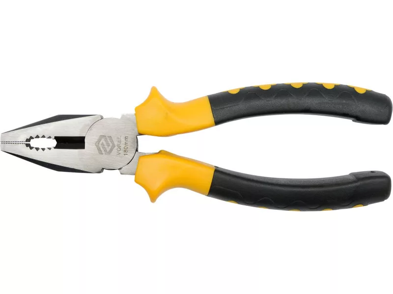 Univerzálne kliešte s dĺžkou 180 mm od spoločnosti Vorel. Povrch čeľustí je vrúbkovaný, čo umožňuje bezpečné uchopenie plochých predmetov a menších nástrojov. Rukoväte sú pokryté pohodlnými dvojzložkovými plastovými krytkami. Pevný spojovací kĺb na prenášanie ťažkých bremien.