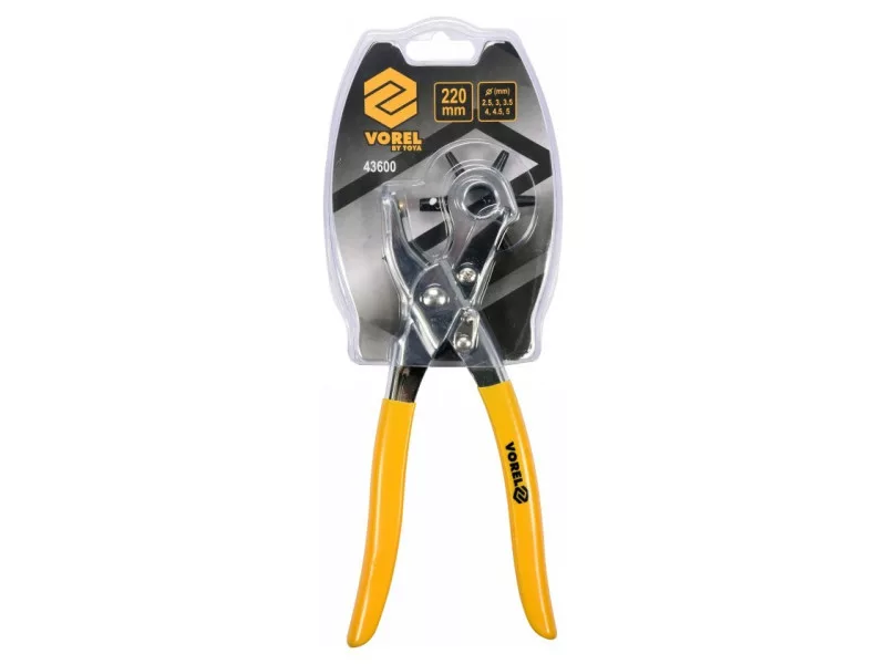 Nastaviteľný dierovač Vorel 220 mm vyrobený z uhlíkovej ocele. Na vytváranie otvorov do kože, koženky, gumy, kartónu a iných materiálov. Dierovačom možno vyrezať otvory s priemerom 2,5, 3, 3,5, 4, 4,5, 5 mm.