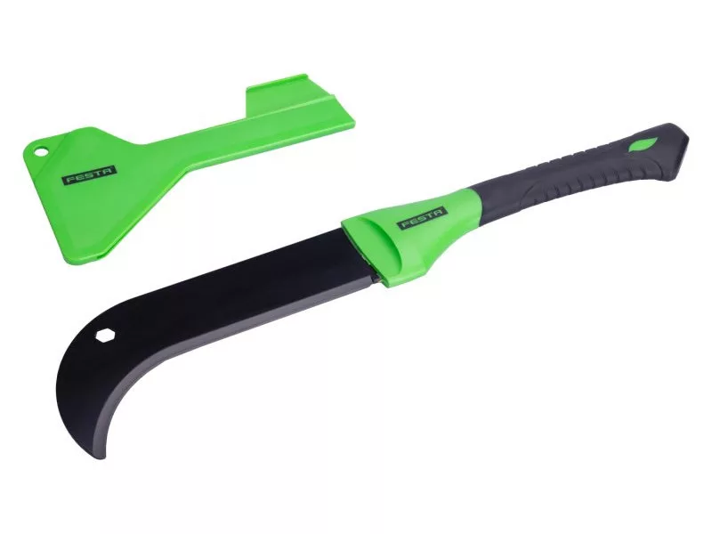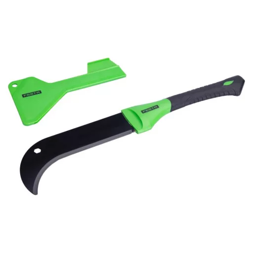 A machete ideális kisebb ágak, fák vagy rönkök eltávolítására, fakéreg lefejtésére és ágak levágására a törzsről, erdészetben és kertészetben. Túrázáshoz, horgászathoz, kempingezéshez stb. is használható. A csúszásmentes gumi fogantyú biztonságos fogást tesz lehetővé, elnyeli a használat okozta ütéseket, csökkenti a fáradtságot és lehetővé teszi a maximális ütési energia átvitelét a szerszám pengéjére. Edzett acélból, köszörült éllel.