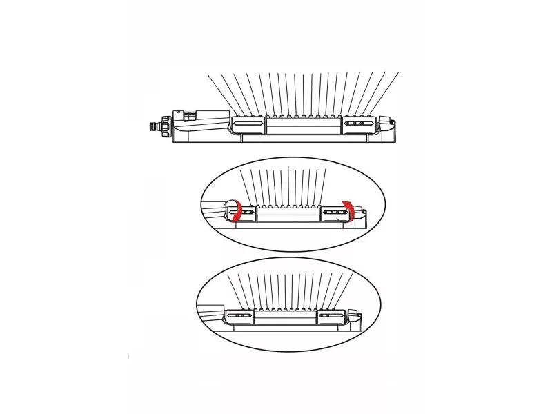 • a sprinkler speciális kialakítása lehetővé teszi az aktív fúvókák (11, 15 és teljes 19) számának beállítását