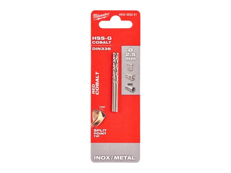 MILWAUKEE Vrták 2,5 x 57/30 mm HSS-G Co DIN 338 Red Cobalt (2 ks)