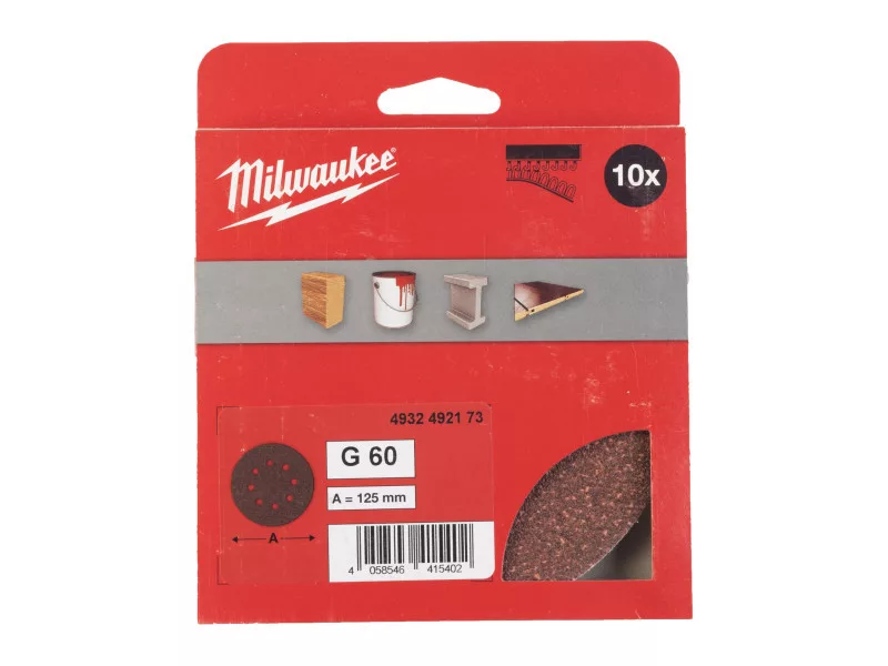 MILWAUKEE Brúsna podložka na suchý zips STD 125 mm / P60 8 otvorov (10 ks)