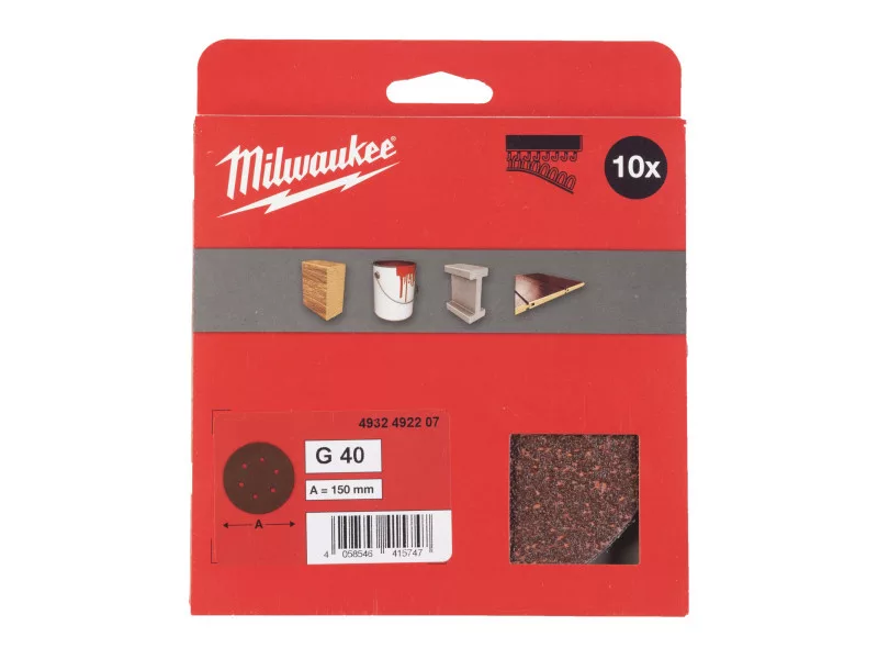 MILWAUKEE Brúsna podložka na suchý zips STD 150 mm / P40 6 otvorov (10 ks)