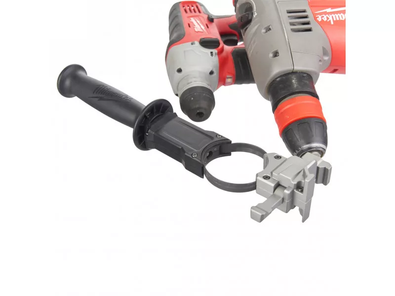 • Použiteľné so všetkými SDS-plus kladivami MILWAUKEE® s priemerom krku 41-61 mm s nastaviteľnou bočnou rukoväťou, ktorú možno namontovať na pravú alebo ľavú stranu kladiva