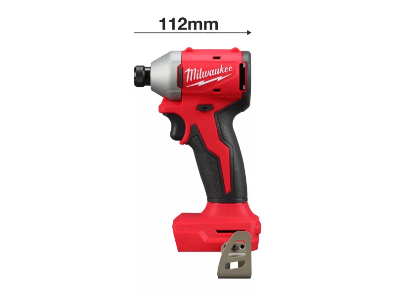 Szénkefe nélküli ütvecsavarozó csupán 112 mm hosszú, kiváló a szűk helyeken végzett feladatokhoz.