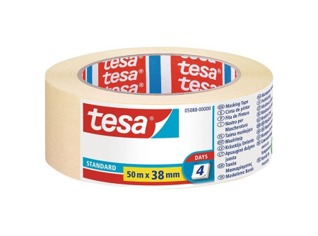 A tesa 51023 általános célú festőszalag enyhén kreppelt textúrájú, gyorsan és könnyen eltávolítható, 3 napig nyom nélkül visszaszedhető és alkalmas általános célú alkalmazásokhoz: tartás, tömítés, rögzítés, kis igénybevételű csomagolás stb.