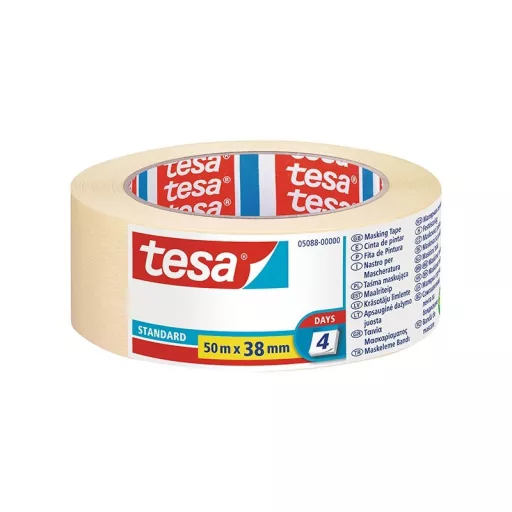 A tesa 51023 általános célú festőszalag enyhén kreppelt textúrájú, gyorsan és könnyen eltávolítható, 3 napig nyom nélkül visszaszedhető és alkalmas általános célú alkalmazásokhoz: tartás, tömítés, rögzítés, kis igénybevételű csomagolás stb.