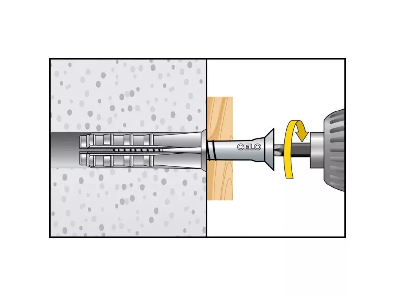 Po zasunutí skrutky sa hmoždinka na 3 stranách rovnomerne rozširuje a tlačí sa k stene otvoru, zatiaľ čo 3 hrany držia hmoždinku na mieste.