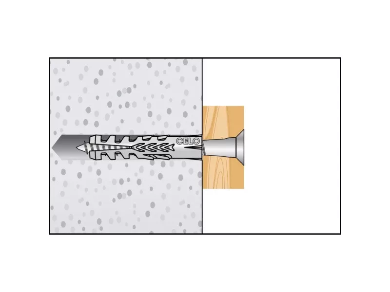 Univerzálny hmoždinka F od spoločnosti CELO má vďaka svojej vysoké rozpínavosti vysoké hodnoty ťahovej pevnosti. Je dostupný v širokom rozmere od 4 do 20 mm v priemere. Univerzálny hmoždinka F je ideálnou voľbou pre kompaktné stavebné materiály, ale tiež pre duté tehly a pórobetónové štruktúry s dobrými zaťažovacími hodnotami. Vďaka dobrej vedeniu skrutky sa skrutka nehybe počas zaskrutkovávania.
