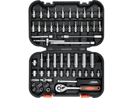 Sada nástrojov STHOR obsahuje 56 kusov v praktickej plastovej krabici. Nástroje sú presne vyrobené z materiálov, ktoré garantujú ich spoľahlivosť.