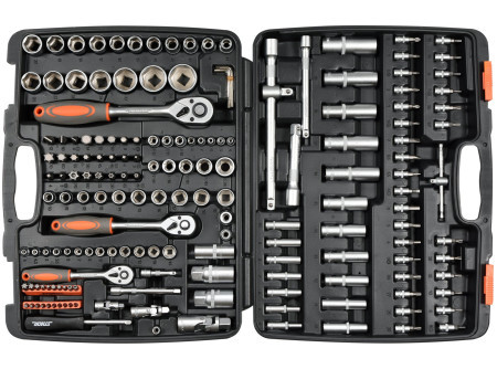Sada nástrojov STHOR obsahuje 173 dielov, ktoré sú umiestnené v praktickom plastovom kufri. Nástroje sú vyrobené z presne spracovaných materiálov, ktoré zaručujú ich spoľahlivosť. Sada obsahuje kompletný sortiment dlhých a krátkych násadiek 1/4 ", 3/8" a 1/2 ", predlžovače, kardánové kĺby a mnoho ďalších prvkov, vrátane 45-zubých račňových mechanizmov. Táto konfigurácia umožňuje použitie sady pri menších montážnych prácach, opravách strojov a mnohých ďalších domácich alebo dielenských prácach.