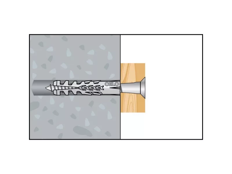Vďaka veľkej schopnosti expandovať, hmoždinka F od spoločnosti CELO dosahuje vysoké hodnoty vyťažnosti. Dostupná je v širokom rozsahu veľkostí od 4 do 20 mm. Hmoždinka F je ideálnou voľbou pre plné stavebné materiály, ale dosahuje dobré hodnoty zaťaženia aj v dutých tehliach a pórobetónových konštrukciách. Vďaka dobrej vodivosti skrutky sa skrutka počas zasúvania nepohybuje.