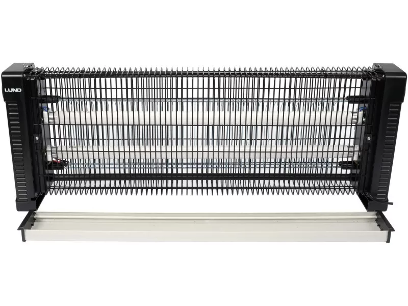 - 2 žiarivky UV-A 20W T8 BL (dlhá životnosť a veľmi účinná, atraktívna pre lietajúci hmyz a bezpečná pre ľudí.