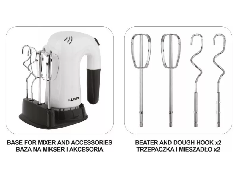 | Nastavte obsah | ručný mixér, metla x2, miešadlo x2, základňa pre mixér a príslušenstvo |