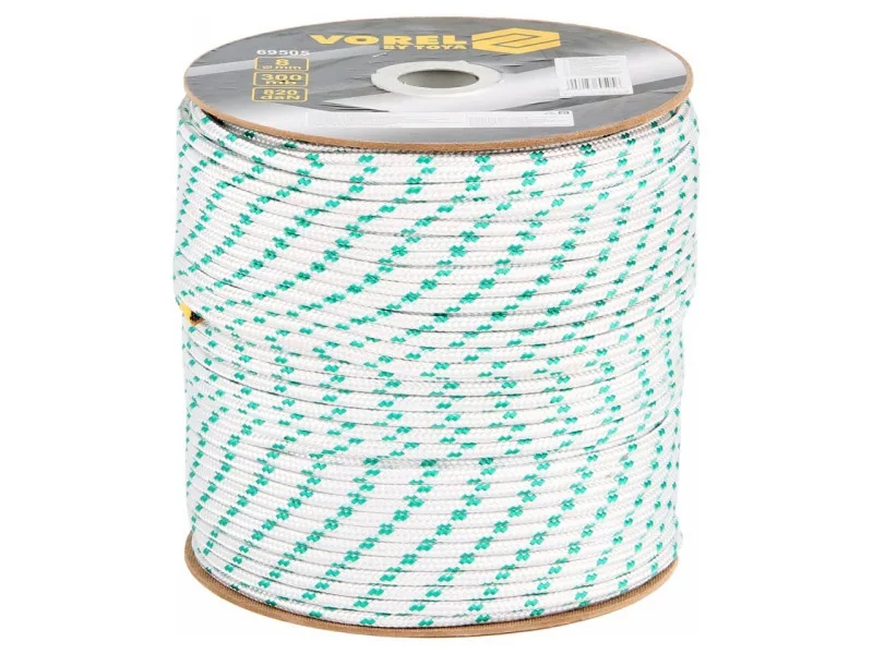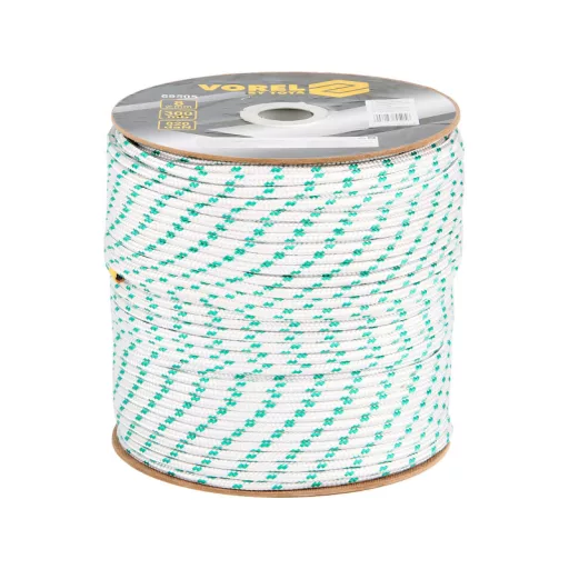 Opletené lano z 24 polypropylénových vlákien doplnené polypropylénovým jadrom odolným proti roztrhnutiu.