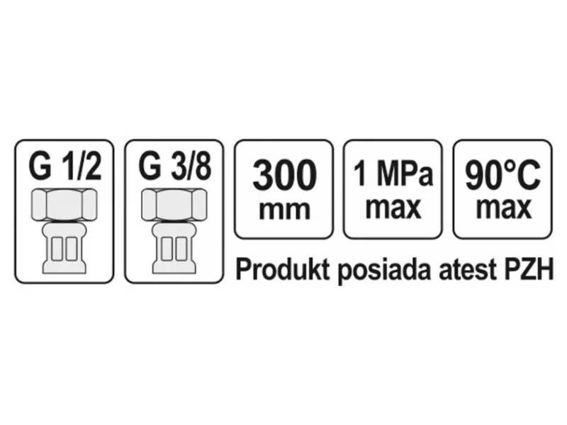 - Pripojovací závit: 1/2" vnútorný x 3/8" vnútorný