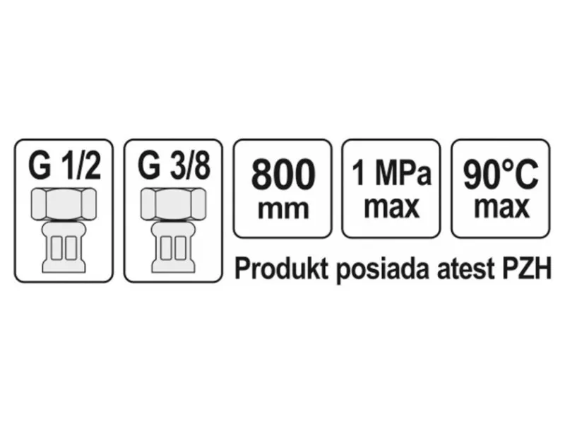 FALA Flexibilná pripojovacia hadica 1/2" x 3/8" 800 mm vnútorná-vnútorná