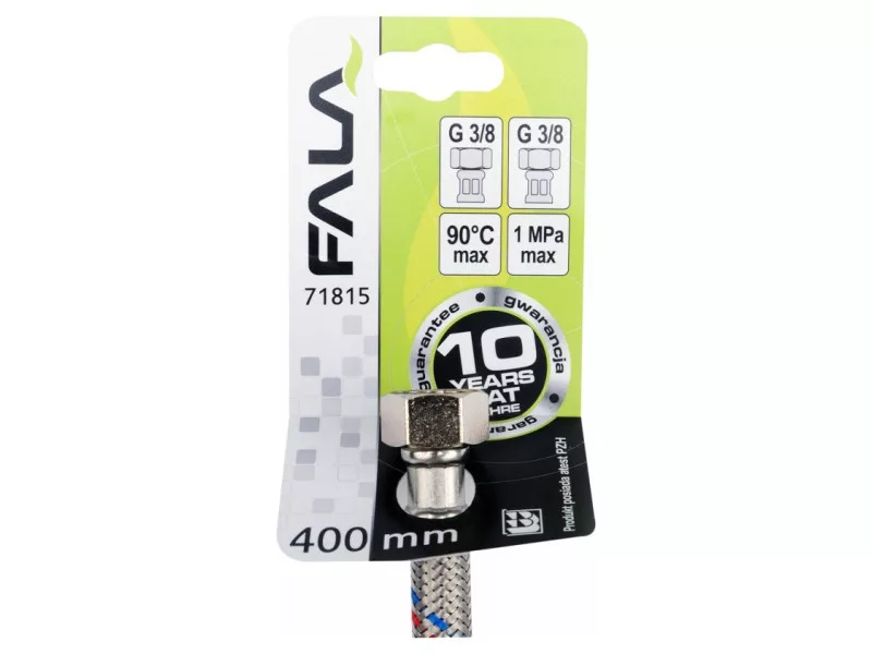 Opletená flexibilná pripojovacia hadica z nehrdzavejúcej ocele na teplú a studenú vodu. Schválená PZH (Štátnym hygienickým ústavom) na styk s pitnou vodou. Gumová hadica z EPDM gumy, poniklované mosadzné prípojky, EPDM gumové tesnenie.