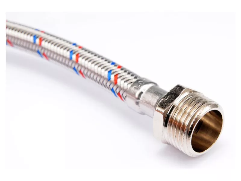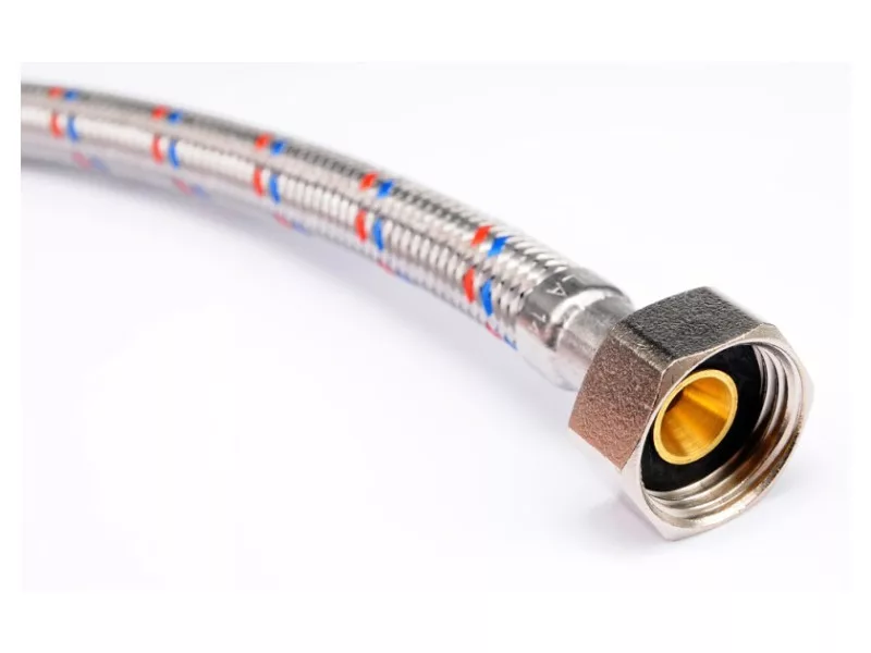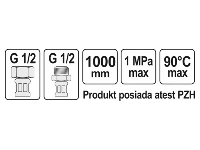 Flexibilná pripojovacia hadica s opletením z nehrdzavejúcej ocele. Vhodná na teplú a studenú vodu. Schválená Štátnym hygienickým ústavom na styk s pitnou vodou. Dĺžka 1000 mm. Maximálny tlak 1 MPa. Maximálna teplota 90 C. Priemerný prietok 32 l/min. Vnútorný priemer 8 mm a vonkajší priemer 12 mm. Pripojovacie závity: vnútorný 1/2" x vonkajší 1/2". Gumová hadica EPDM, poniklované mosadzné prípojky, gumové tesnenie EPDM. Je určená na pripojenie WC splachovačov alebo ventilov.