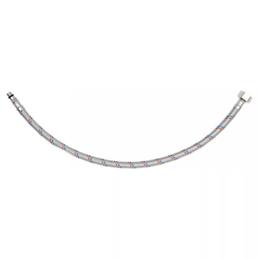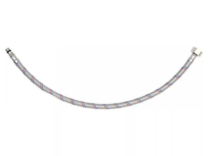 Flexibilná pripojovacia hadica s opletením z nehrdzavejúcej ocele pre vodovodné batérie. Vhodná na teplú a studenú vodu. Schválená Štátnym hygienickým ústavom na styk s pitnou vodou. Dĺžka 500 mm. Maximálny tlak 1 MPa. Maximálna teplota 90 C. Priemerný prietok 32 l/min. Vnútorný priemer 8 mm a vonkajší priemer 12 mm. Pripojovacie závity: vnútorný 1/2" x vonkajší M10 (krátky 17 mm). Gumová hadica EPDM, poniklované mosadzné prípojky, gumové tesnenie EPDM. Je určená na pripojenie umývadlových a vaňových batérií s ventilmi.