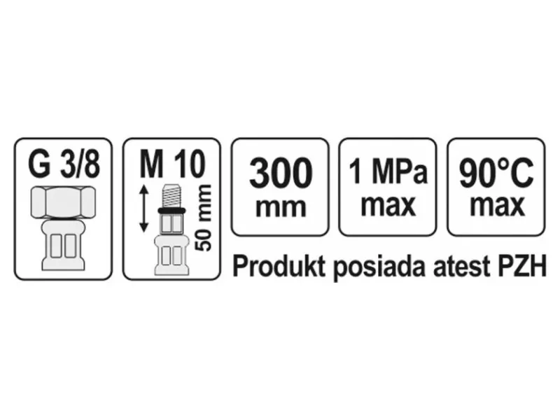 - pripojovací závit: vnútorný 3/8" x vonkajší M10 (dĺžka 50 mm)