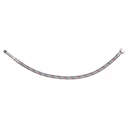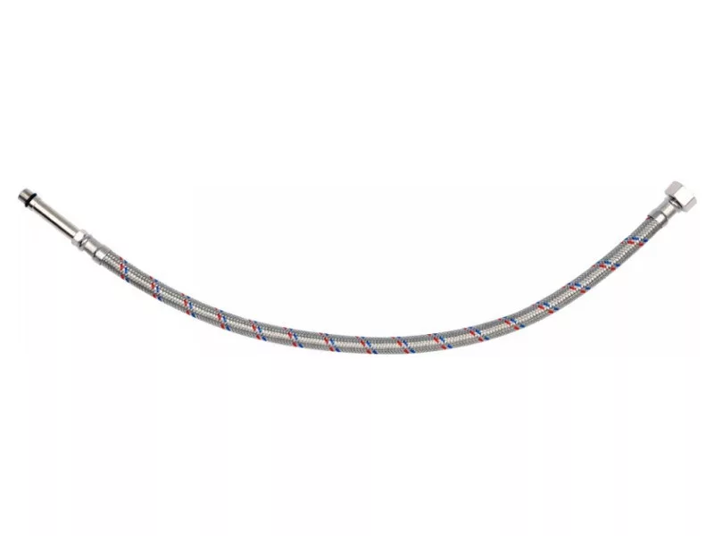 Flexibilná, z nehrdzavejúcej ocele opletená pripojovacia hadica pre vodovodné batérie, vhodná pre teplú a studenú vodu.