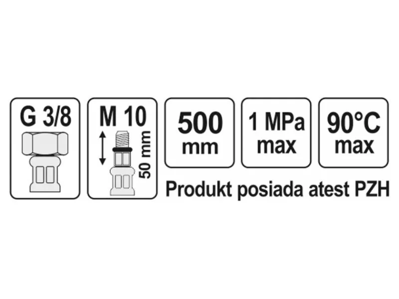 - pripojovací závit: vnútorný 3/8" x vonkajší M10 (dĺžka 50 mm)