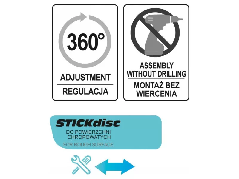 Inštalácia na drsné povrchy (napr. matné dlaždice) je možná vďaka špeciálnemu kotúču od spoločnosti 3M, ktorý je súčasťou držiaka.
