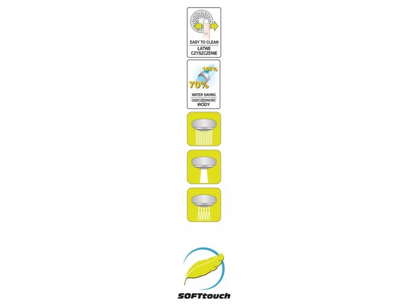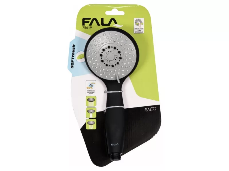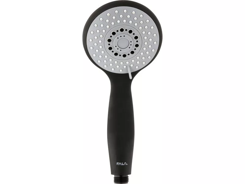 Trojfunkčná sprchová rukoväť Salto je riešením pre tých, ktorí by radi zladili dekor svojej kúpeľne s ostatnými prvkami v tejto farbe s čiernou rukoväťou.