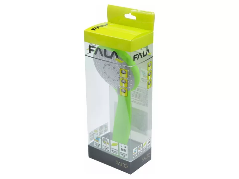 Trojfunkčná sprchová rukoväť Salto je riešením pre tých, ktorí by radi oživili interiér svojej kúpeľne farebnou rukoväťou. Je vyrobené z odolného a ľahkého ABS plastu, vďaka čomu je veľmi praktické. Vďaka povrchovej úprave soft touch je príjemná na dotyk.