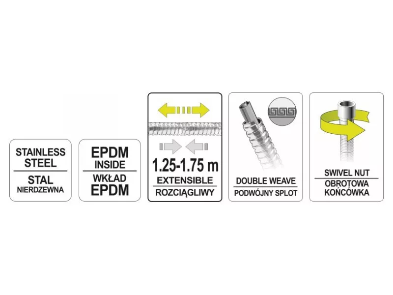- materiál: nehrdzavejúca oceľ, EDPM guma