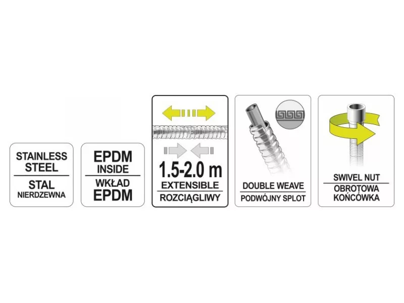 Univerzálne sprchové hadice Wave doplnia nekompletnú sprchovú a vaňovú batériu alebo nahradia poškodenú hadicu. Dostupné dĺžky umožňujú dokonalé prispôsobenie batérii, čím sa zabezpečí komfort pri používaní.