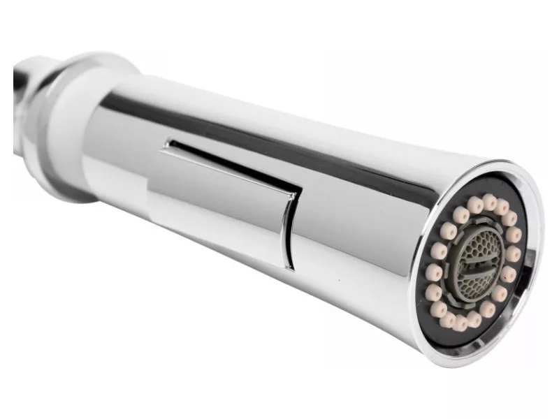 - 2-funkčná ručná sprcha umožňuje prepínať medzi koncentrovaným prúdom, ktorý je ideálny na nalievanie vody do misy, a sprchovým prúdom, ktorý je vhodný na oplachovanie riadu alebo potravín