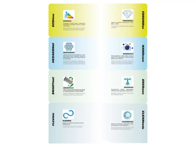 - výtoková rúrka je pokrytá farebným silikónom s povrchovou úpravou soft touch