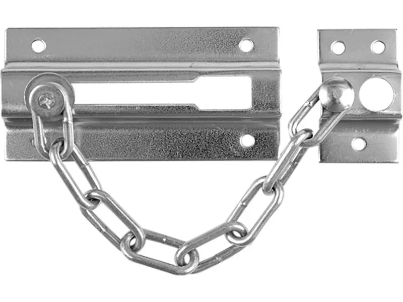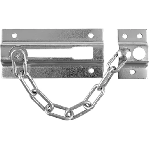 chrómovaná reťaz na dvere, dĺžka západky 85 mm, dĺžka reťazovej platne 24 mm, výška západky 41 mm, výška reťazovej platne 41 mm, hrúbka reťaze 3 mm, hmotnosť 66 g