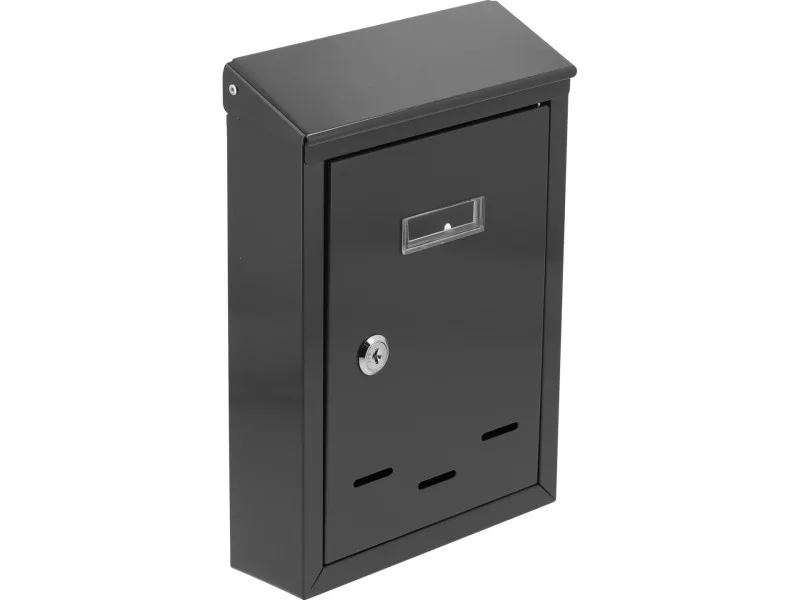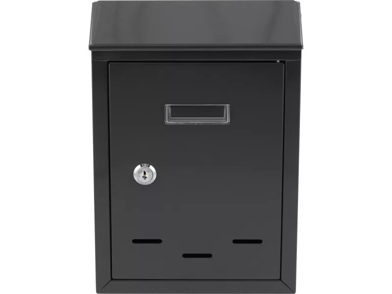 Poštová schránka s rozmermi 285x200x60 mm. Vyrobená z pozinkovaného oceľového plechu s hrúbkou 0,6 mm v grafitovej farbe. Poštová schránka má v hornej časti otvor s ochranným krytom. Na prednej strane je plastový panel s možnosťou pripevnenia identifikačného štítku s adresou alebo menom. Predné dvierka sú uzamykateľné. Dodávajú sa dva kľúče. Zadná strana má montážne otvory. Čistá hmotnosť 0,88 kg.
