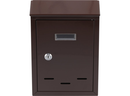 Doboz 285x200x60mm méretekkel. 0,6mm vastag acéllemezből készült, barna galvanizált. A doboz tetején menetes lyuk található, védőfedelet tartalmaz. Az első oldalon műanyag panel található, lehetőséget adva azonosító tábla elhelyezésére, címmel vagy vezetéknevével. Az első ajtó zárható. A készlethez tartozik 2 kulcs. A hátsó oldalon szerelőlyukak találhatók. Nettó súly 0,88kg.