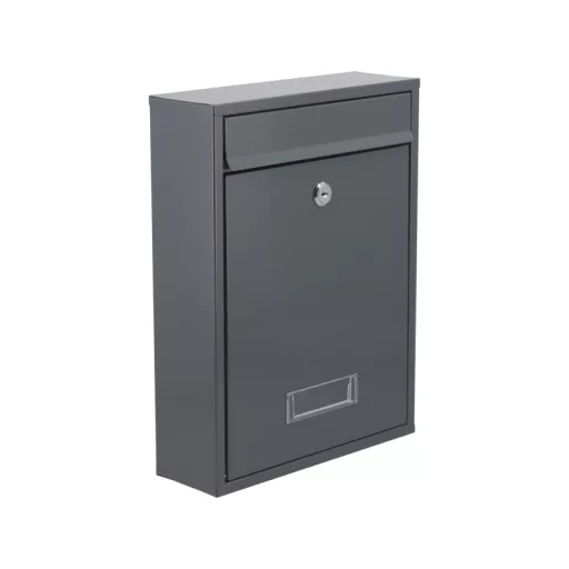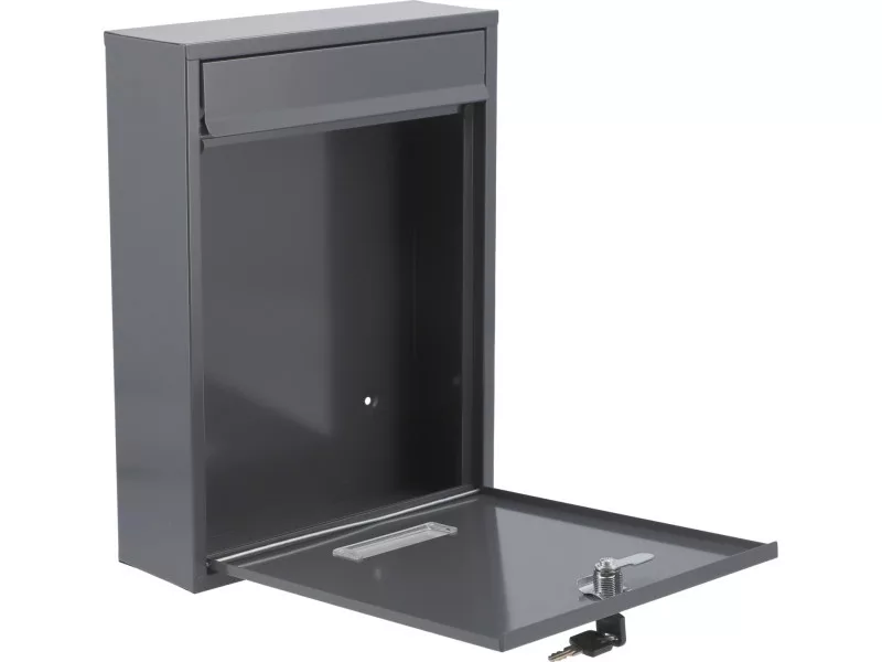 Poštová schránka s rozmermi 360x260x80 mm. Vyrobená z pozinkovaného oceľového plechu s hrúbkou 0,6 mm v sivej farbe. Poštová schránka má v prednej časti otvor s ochranným vekom. Predné dvierka sú uzamykateľné. Schránka sa dodáva s 2 kľúčmi. Na prednej strane je plastový panel s možnosťou umiestnenia identifikačného štítku s adresou alebo menom. Zadná strana má montážne otvory. Čistá hmotnosť 1,73 kg.