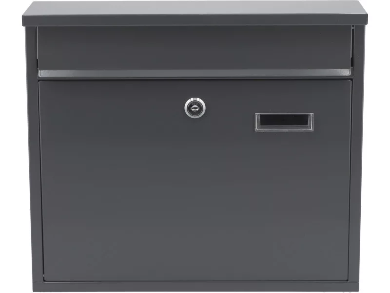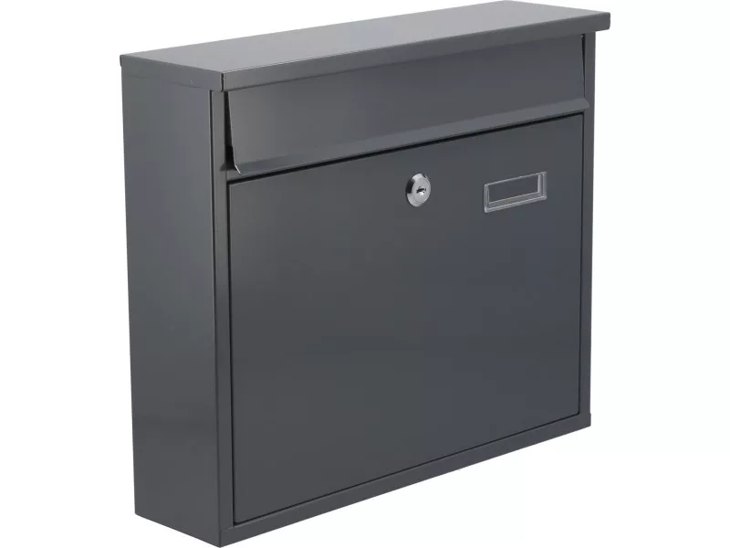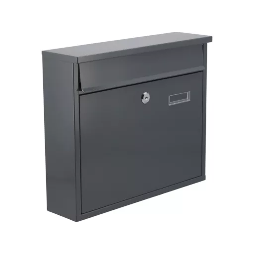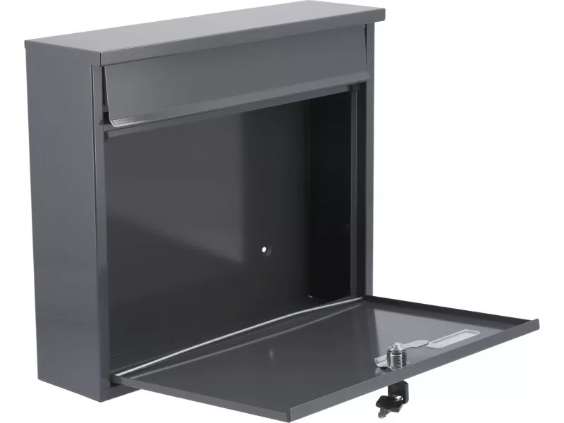 Poštová schránka s rozmermi 310x360x100 mm. Vyrobená z pozinkovaného oceľového plechu s hrúbkou 0,6 mm v sivej farbe. Poštová schránka má vpredu otvor s ochranným vekom. Predné dvierka sú uzamykateľné. Schránka sa dodáva s 2 kľúčmi. Na zadnej strane sú montážne otvory. Čistá hmotnosť 2,11 kg.