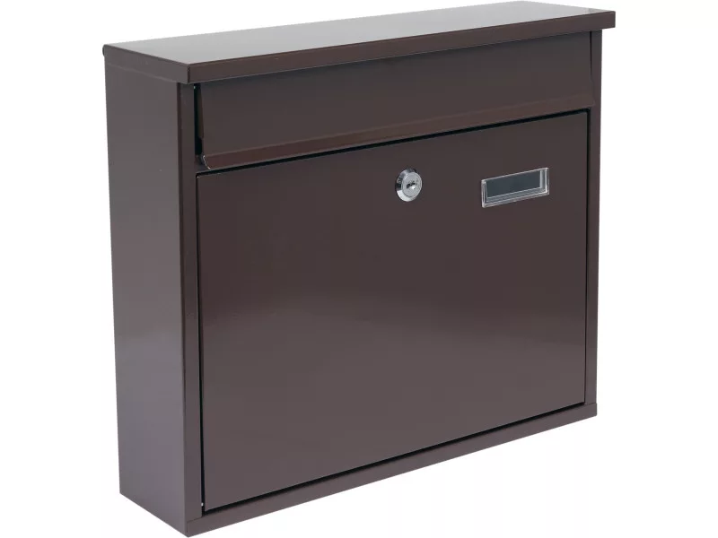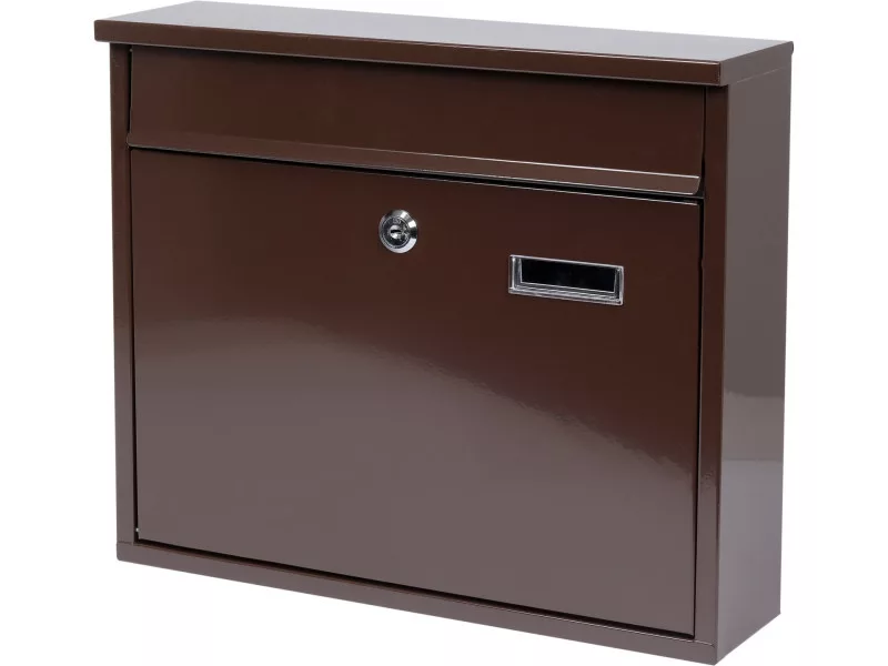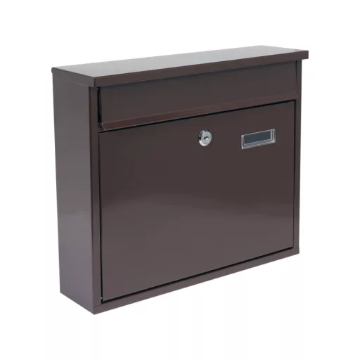 Poštová schránka s rozmermi 310x360x100 mm. Vyrobená z pozinkovaného oceľového plechu hrúbky 0,6 mm v hnedej farbe. Poštová schránka má vpredu otvor s ochranným vekom. Predné dvierka sú uzamykateľné. Súčasťou balenia sú 2 kľúče. Na zadnej strane sú montážne otvory. Čistá hmotnosť 2,11 kg.