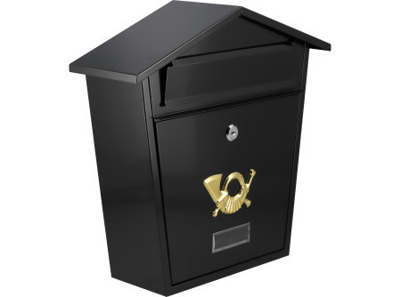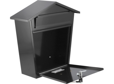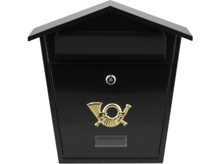 Poštový schránka 380x320x105mm. Vyrobena z ocele o hrúbke 0,6mm, s čiernou galvanizovanou povrchovou úpravou. Vstup pre prichádzajúce listy je na zadnej strane, s ochranným krytom. Predná strana má plastový panel, na ktorý možno umiestniť identifikačnú tabuľku s adresou alebo priezviskom. Predná strana je uzamykateľná. Súčasťou balenia sú 2 kľúče. Na zadnej strane sú otvory pre upevnenie. Čistá hmotnosť 2,15kg, 2 kľúče.