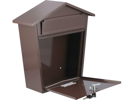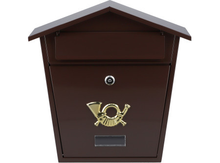 Postafiók 380x320x105mm méretben. 0,6mm vastag acéllemezből készült, barna galvanizált. A bejövő levelek számára van egy hátsó nyílás védőfedéllel. A frontoldalon műanyag panel található, ahol azonosító táblát lehet elhelyezni címmel vagy vezetéknévvel. Az előlap zárható. A csomagban 2 kulcs található. A hátlapon rögzítőlyukak találhatók. Nettó tömeg 2,15kg 2 kulccsal