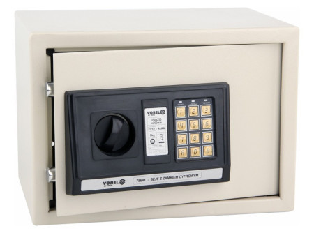 Safe Vorel s digitálnym zámkom, vyrobený z hrubého oceľového plechu, môže byť namontovaný na stenu alebo podlahu. Zariadenie je vybavené systémom upozornenia na nízku úroveň nabitia batérie. Funguje na 4 batérie AA (1,5V). Funkcia núdzového otvárania kľúčom - skrytý zámok. SEJF Universal kľúč (2 ks), 4 batérie 1,5V, užívateľská príručka, záručný list.