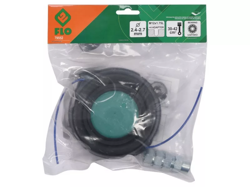 Technické údaje:- montáž: skrutka s ľavým závitom, - 5 veľkostí adaptérov: M12 x 1,75L, M10x1,0L, M10x1,25L M10x1,5L, M12x1,5L - Výška hlavy: 70 mm - Priemer hlavy: 123 mm Poloautomatická dvojitá rezacia hlava Linka sa vysúva úderom o zem. Zaklapávacie upevnenie krytu neumožňuje jeho odpojenie počas prevádzky. Vystužená kovovými vložkami Hlava s ložiskami - zaisťuje plynulé vyhadzovanie vlasca z hlavy Použitie: trávniky, vysoká tráva, burina, malé húštiny Odporúčaný objem motora: od 30 do 42 cm3 Tabuľka s typmi a veľkosťami závitoviek a kaziacich strojov. Pred výberom hlavy na linku skontrolujte typ a rozmery upevňovacej nitky v návode na obsluhu stroja. M12 x 1,75 l - Husqvarna 143RII, 143 R, 153R, 241R, 236R, 243R, 253R, 235R, 240R, 245R, 333R, 335R, 335FR, 345RX, 343R M10 x 1 l - Makita BCX 2500, 2510, 3400, 3410, BBC5700 Dolmar MS5700, 352.4; Stihl FS 55, 75, 85, 100, 120, 200 M10 x 1,25L - Alko BC 301 Dolmar MS 25, 30, 290, 340 Efco 8460, 8530 Echo SRM 2305, 250, 330, 350, Honda UMK 425, 431, 435 Husqvarna 123L, 123 LD, 128 LDx, 133R, 223, 224 L, 226R, 323L, 323 R325LD, 232R, 322R, 326R, 326 LDx, 327 LDx, 523 L, 525 L, 525 LDx, 525 LS, 525 Rx, 533 Rx Kawasaki KBH 27, 34, 43, 48 McCulloch CABRIO: 300L, 300B,250 L, 300E, , ELITE: 1.610 BT, 1.810 BT,2.010 BT, 2.010 L, 2.210 BP, 2.210 L, 2.510 BP, 2.710 B-PRO, 2.710 L ; Makita DBC 250, 290, 300, 340 NAC CG 260, 330 B, CG 430B, CG 260N, CG 330N, CG430, WLBC 260, WLBC 430, WLBC 520; Partner B261, B290, B291, B300, B340, B341, B347, B407, BA407, BA437, BA467, BA477, BA497, BC435 Texas CG 250, 260 Victus BC 26, 32, 42 M10 x 1,5 - McCulloch CABRIO 341, 390 ELITE 4300, 4700, SUPERMAC 26 , MAC 30A M12 x 1,5 LW - Stihl FS300, 350, 400, 450 Solo 130, 134, 140 Makita DBC 400, 4010, 4510 Dolmar MS 400, 3310, 4510 Ložisková hlava kompletná s priemerom 2,4 mm, 2,5 m dlhým vedením 5 adaptérov vo veľ: M12 x 1,75L, M10x1,0L, M10x1,25L M10x1,5L, M12x1,5L