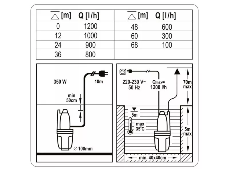 Ponorné čerpadlo určené na čerpanie čistej vody zo studní, záhradných jazierok, rybníkov, ako aj na zavlažovanie pozemkov.