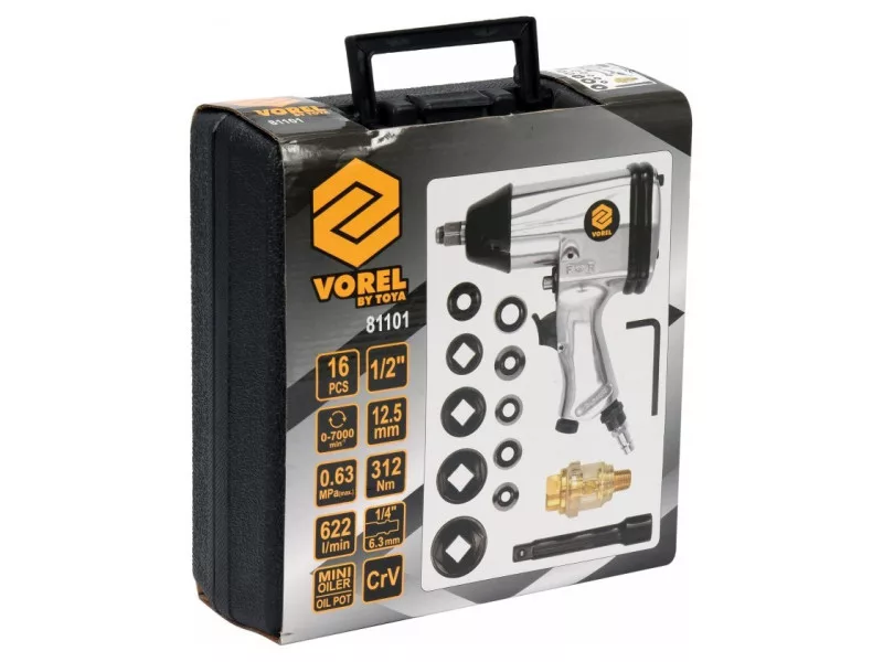 Pneumatický rázový kľúč 1/2'' s nástrčkami, 16 dielov