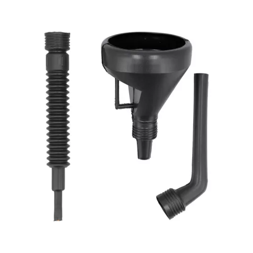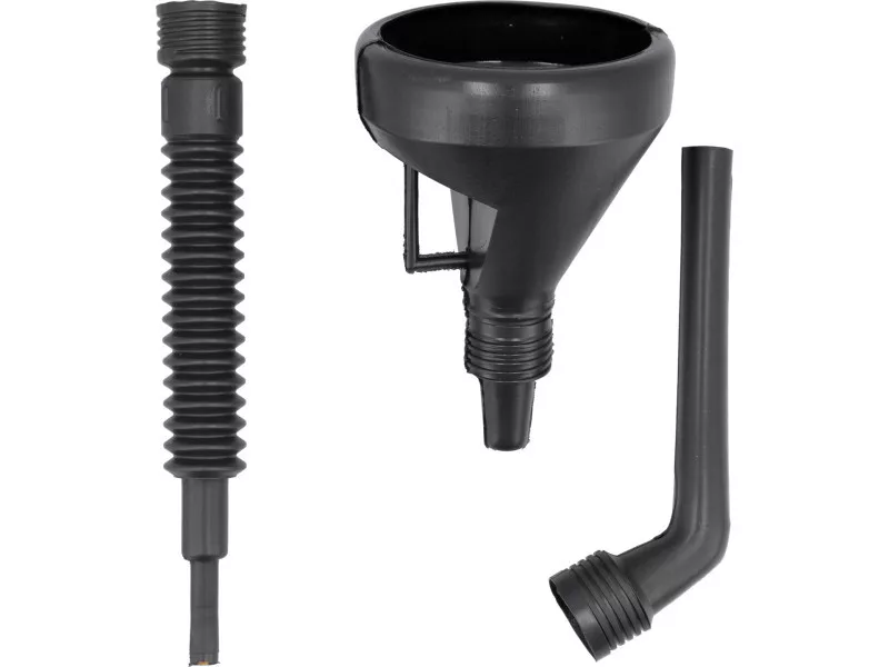 3-dielny lievik so sitkom na palivo, olej a iné prevádzkové kvapaliny. Je vybavený 2 vymeniteľnými koncovkami (jedna flexibilná a jedna pevná, ohnutá pod uhlom 50°) na uľahčenie nalievania. Má široké využitie v garážach, dielňach a automobilových servisoch.