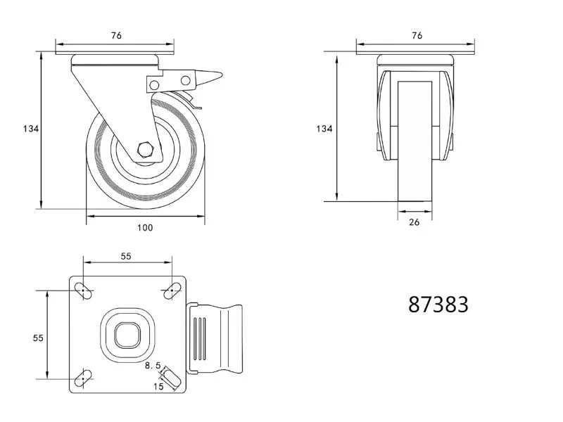 VOREL Priemyselné koleso s otočnou brzdou vidlice 100 mm 45 kg